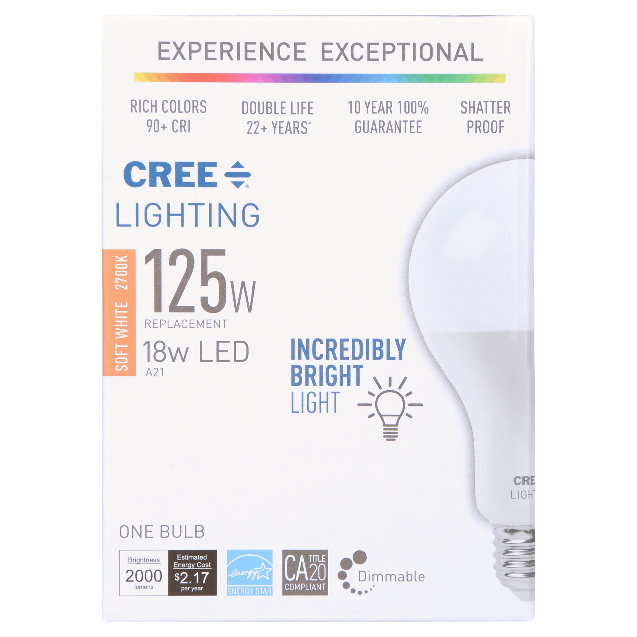 Cree Lighting A21 100w Equivalent Led Bulb 2000 Lumens Dimmable Soft White 2700k 25 000 Hour Rated Life 90 Cri 1 Pack Walmart Com