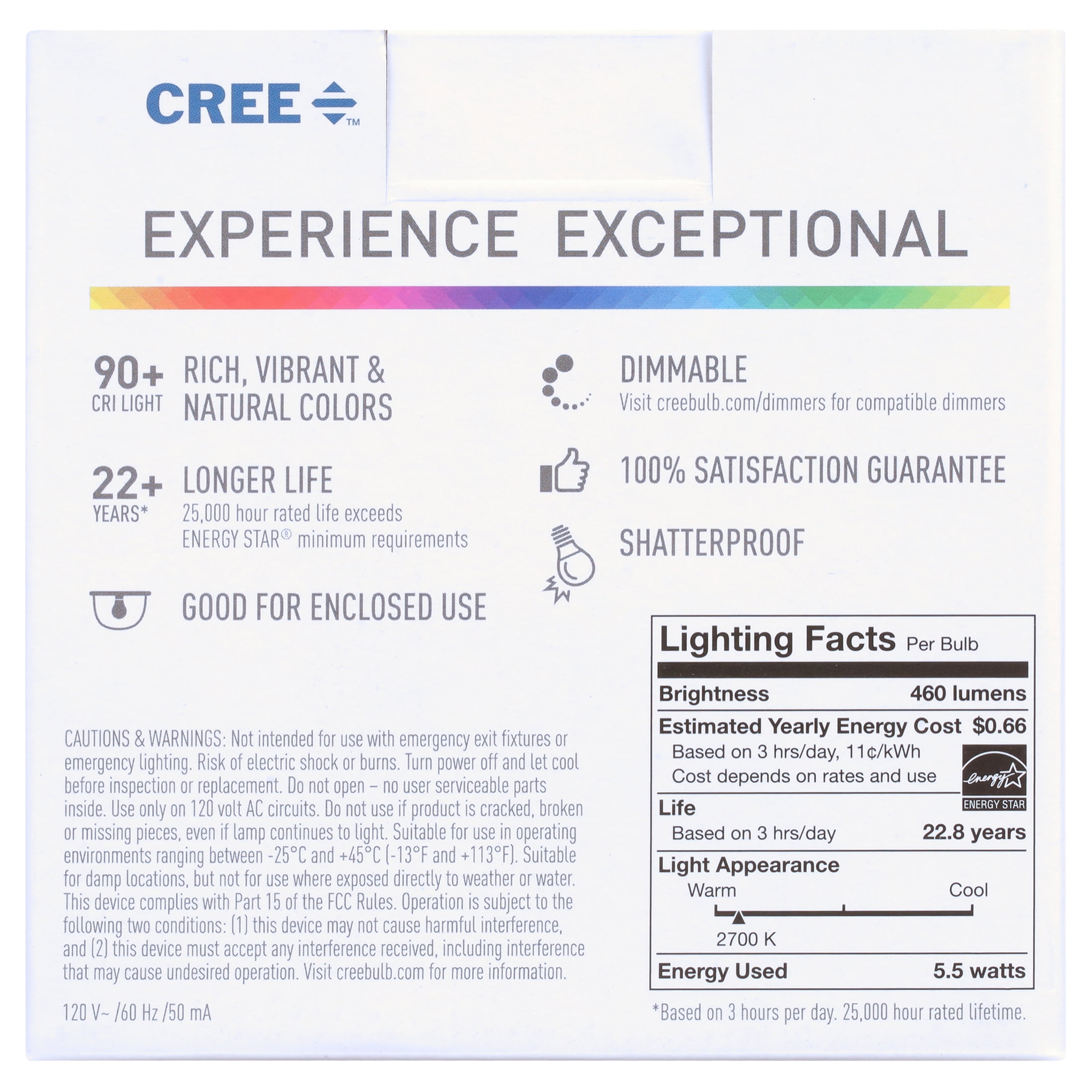 Cree Lighting A19 40w Equivalent Led Bulb 460 Lumens Dimmable Soft White 2700k 25 000 Hour Rated Life 90 Cri Good For Enclosed 2 Pack Walmart Com