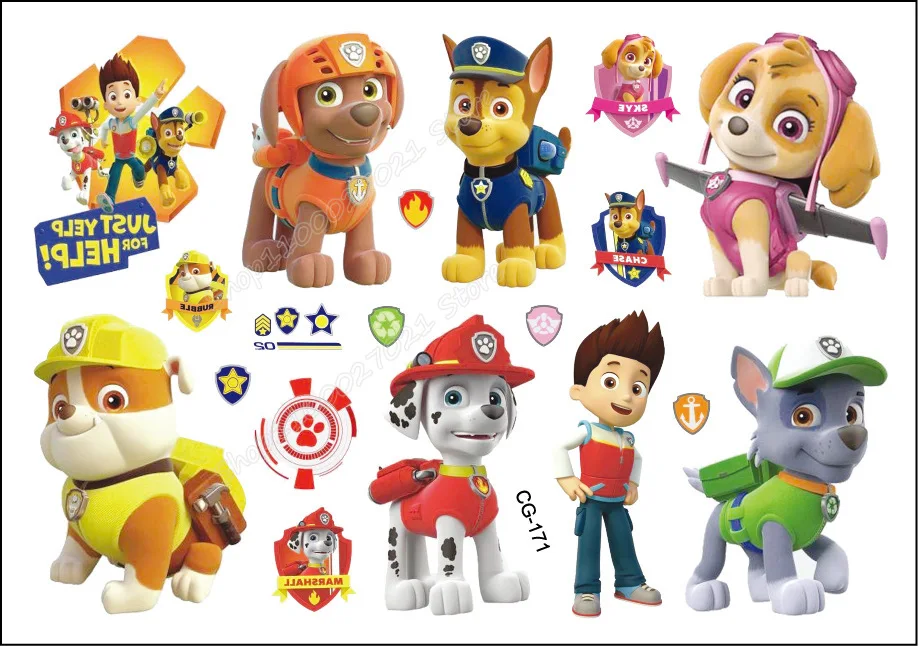 Paw Patrol Temporary Tattoos Skye Paw Patrol Tattoo Pow Patrol Tattoo Cosplay Body Aliexpress