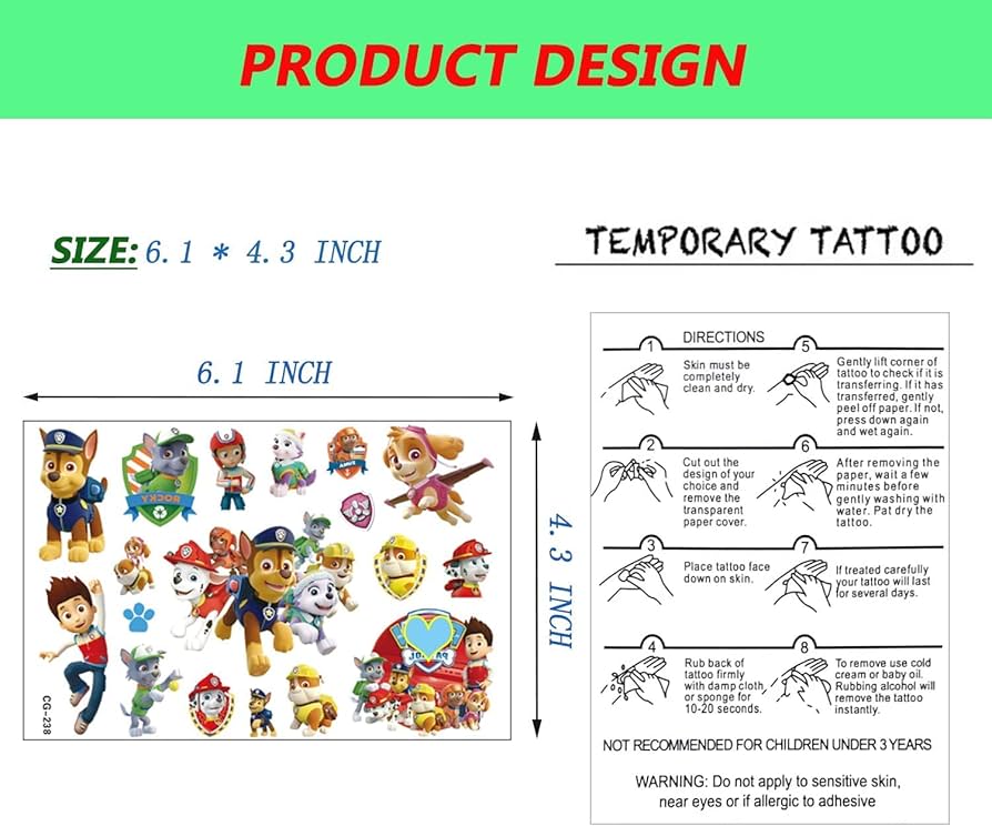 Temporary Tattoo Set Kids Tattoos For Paw Patrol 100 Pcs 5 Sheets Paw Patrol Kids Tattoos Stickers Stickers For Gift Bags Children S Birthday Giveaways Girls Boys Amazon Co Uk Everything Else